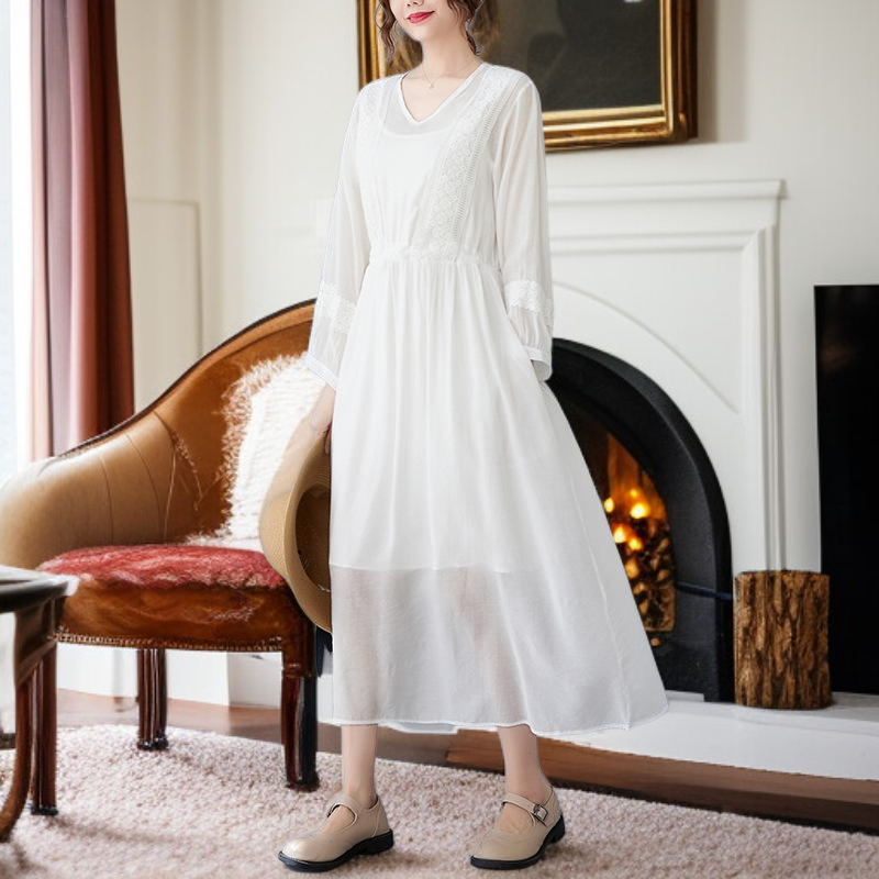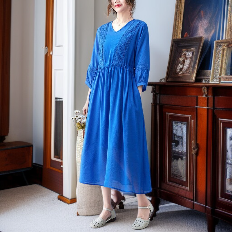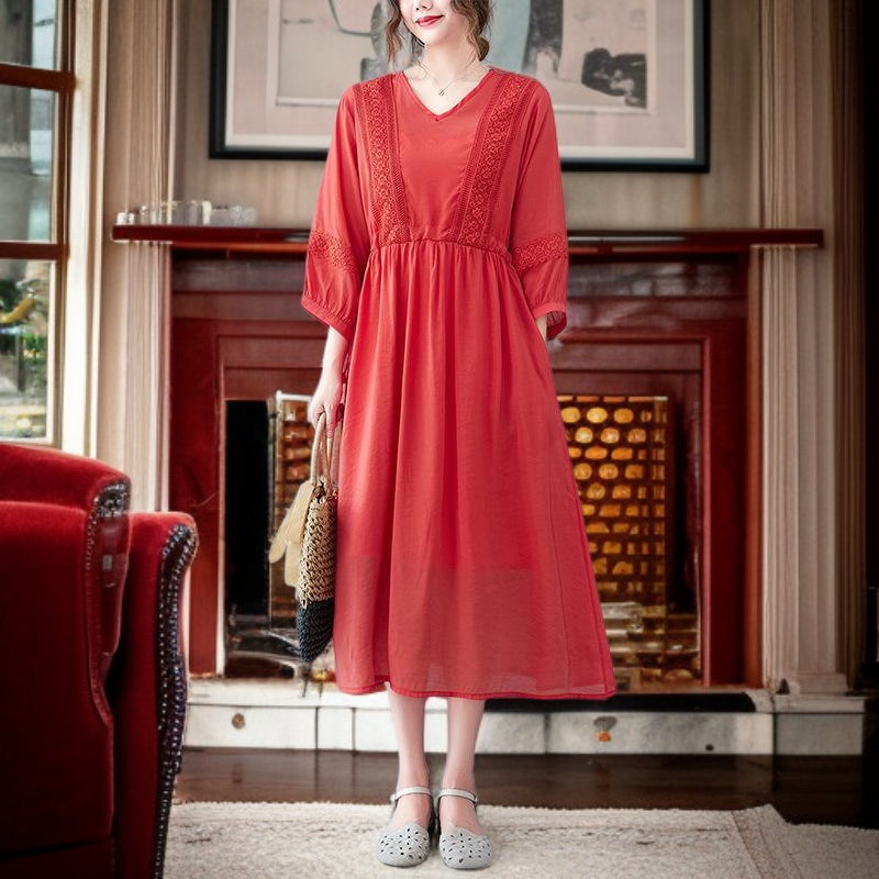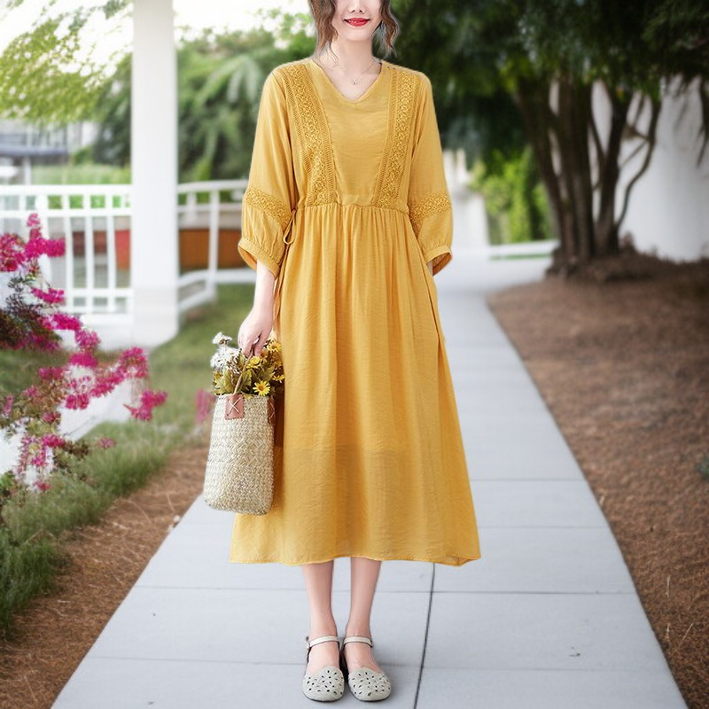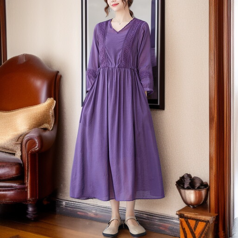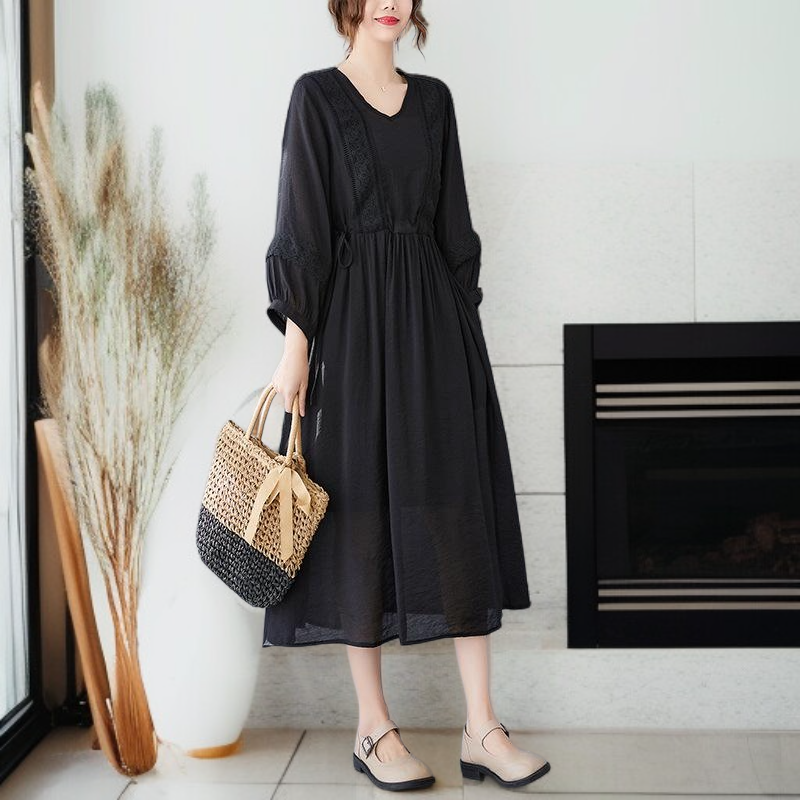 편하고 모던 심플 7부 문예풍 스트랩 원피스 롱 브이넥